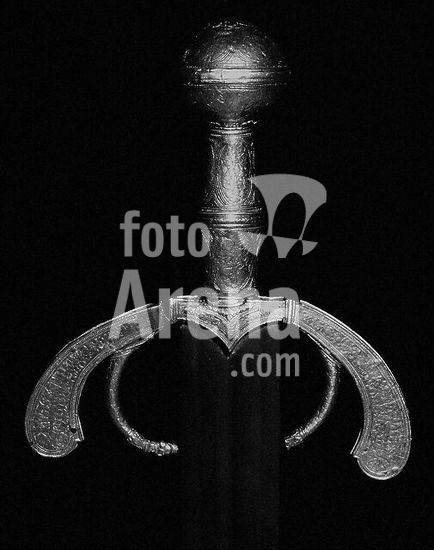 orz226263 ESPADA DE FERNANDO EL CATOLICO - EMPUÑADURA CHAPADA EN ORO - SIGLO XV - FOTOGRAFIA EN BLANCO Y NEGRO - AÑOS 60. Location: CATEDRAL-CAPILLA REAL-INTERIOR. GRANADA. SPAIN.
