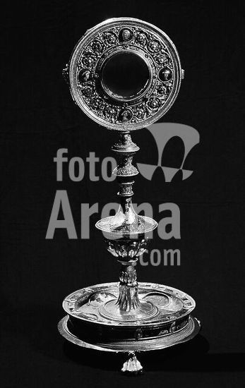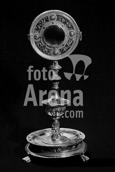 orz226269 ESPEJO DE ISABEL LA CATOLICA CONVERTIDO EN CUSTODIA DE TIPO OSTENSORIO - SIGLO XV - FOTOGRAFIA EN BLANCO Y NEGRO - AÑOS 60. Location: CATEDRAL-CAPILLA REAL-INTERIOR. GRANADA. SPAIN.