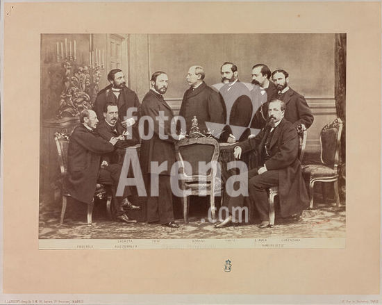 orz227795 FOTOGRAFIA DEL GOBIERNO PROVISIONAL EL 8 DE OCTUBRE DE 1868 FORMADO POR FRANCISCO SERRANO. Author: JEAN LAURENT 1816/1886 FOTOGRAFO. Location: BIBLIOTECA NACIONAL-COLECCION. MADRID. SPAIN. CONDE DE REUS. GENERAL PRIM. DUQUE DE LA TORRE. TOPETE JUAN BAUTISTA. RUIZ ZORRILLA MANUEL. FIGUEROLA LAUREANO. ROMERO ORTIZ ANTONIO. ALVAREZ LORENZANA JUAN. FRANCISCO SERRANO DOMINGUEZ (1810-1885). ADELARDO LOPEZ DE AYALA (1828-1879). GENERAL JUAN PRIM Y PRATS (1814-1870). PRAXEDES MATEO SAGASTA (1825-1903).