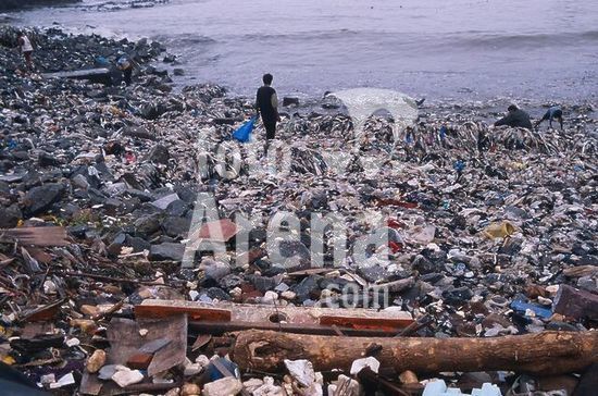 akg1663913 Bombay / Mumbai (Maharashtra, Indien).-Strand mit angeschwemmtem Müll, der nach Verwertbarem duchsucht wird.-/ Foto, undatiert.