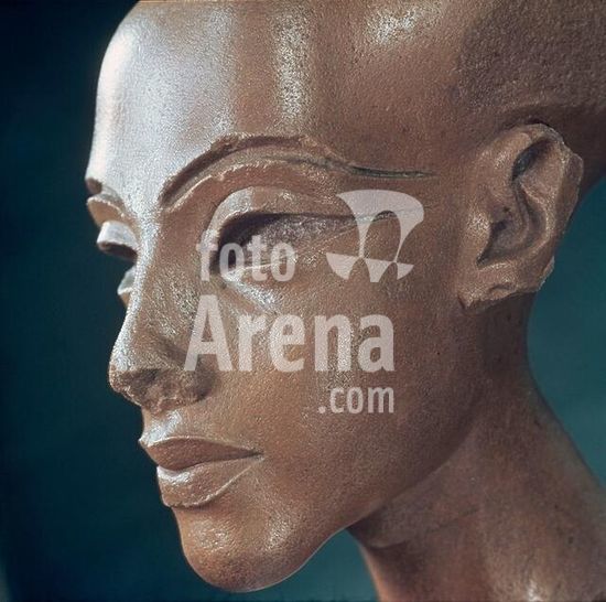 akg217054 Nefertiti wife of the Egyptian Pharaoh Akhenaton. (Amenhotep IV). Head of Nefertiti. New Kingdom, 18th dynasty, c. 1373-1357 BC (Amarna Art). Brown quarzite, unfinished. 33cm high. Found at: Tell el-Amarna. Cairo, Egyptian Museum. Museum: Cairo, Egyptian Museum.
