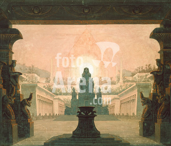akg212658 Mozart, Wolfgang Amadeus Composer, 1756-1791. Works: The Magic Flute (1791). - "Inside of the sun temple" (Stage design for the prod. at the Berlin Opera, 18.1.1816, 12th decoration, final set). Drawing by Karl Friedrich Schinkel. (1781-1841). Opaque colours, 54.2 × 62.5cm. Berlin, Schinkel Museum. Museum: Berlin, Schinkel Museum.