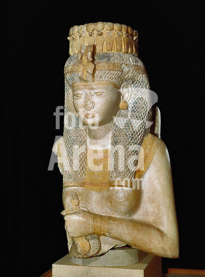 akg2163811 Merit-Amon; Egypt. queen, daughter and wife of Ramses II / - Statue of Queen Merit-Amon. Egyptian, New Kingdom, 19th dynasty, reign of Ramses III, c. 1271 - 1224 BC. Limestone, painted, height 75cm, width 44cm, depth 44cm. Origin: Thebes-West, chapel of the queen northwest of the Ramesseum. JE 31413 = CG 600. Cairo, Egyptian Museum. Museum: Cairo, Egyptian Museum.