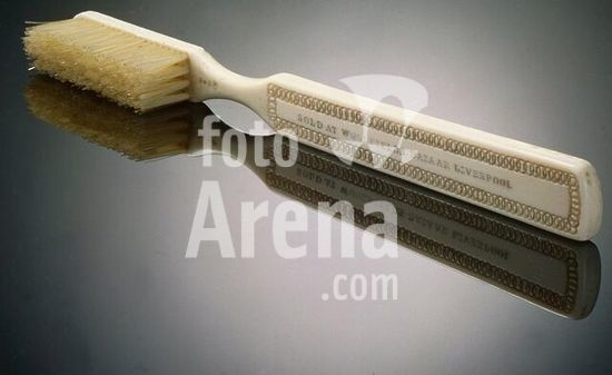 akg247907 Bad und Körperpflege / Mundhygiene. Zahnbürste. England, 19. (?) Jahrhundert. Elfenbein und Borsten. Berlin, Sammlung Wehmann (Sammlung medizinhistorischer Antiquitäten).