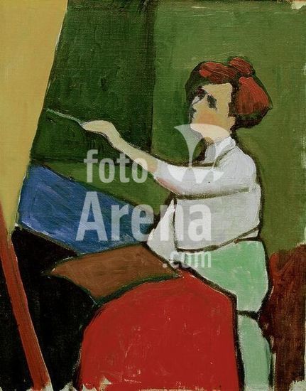 akg255431 Münter, Gabriele; artist. Berlin 19.2.1877 - Murnau 19.5.1962. "An der Staffelei" (At the easel), self portrait, c. 1910. Oil on cardboard, 40 × 31 cm. Private collection. Copyright: © Gabriele Münter. This artwork is not in the public domain. It is your responsibility to obtain all necessary third party permissions from the copyright handler in your country prior to publication.