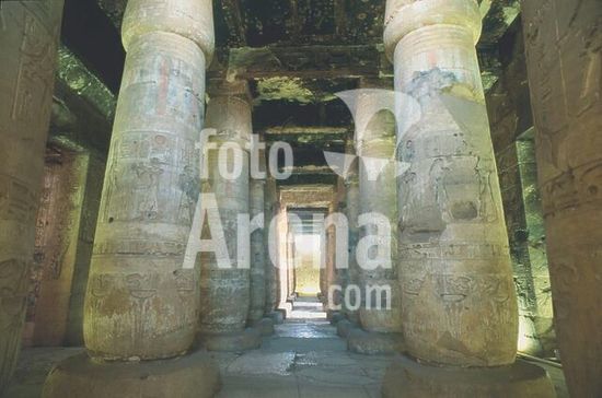 akg256887 Abydos (Upper Egypt), Temple of Seti I. (New Kingdom, 19th dynasty, 1303-1290 BC). Interior view: second pillared hall (hypostyle). Photo, December 1998.