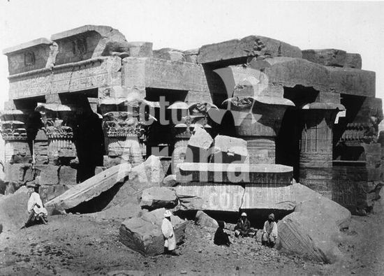 akg5542384 Karnak (Ägypten), Amun-Tempel, Teilansicht: "gr. Temple - les piliers de granit" (Granitsäulen). Foto, um 1890 (Edition Photoglob).