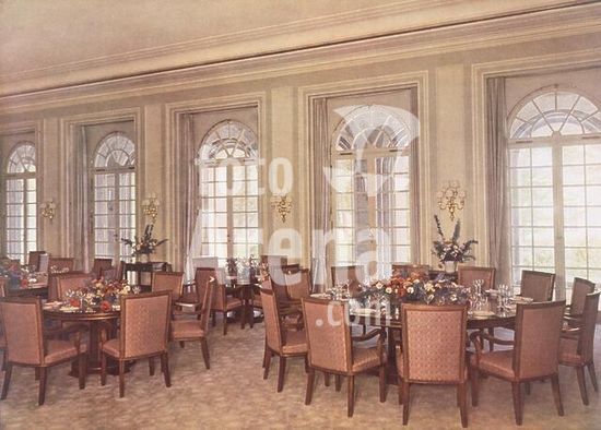 akg306037 Berlin, Neue Reichskanzlei. (New Reich's Chancellery). (built 1938; arch.: Albert Speer), - Interior view: dining hall. Col. print aft. col. photo. From: A.Speer, Die Neue Reichskanzlei, Munich (central publ. house of the NSDAP). 1939, p. 102. Berlin, Sammlung Archiv für Kunst und Geschichte. Museum: Berlin, Sammlung Archiv für Kunst und Geschichte.