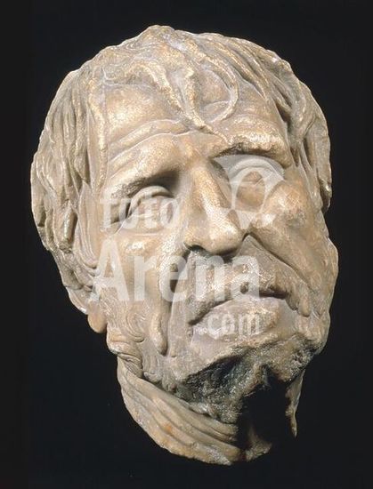 akg332154 Greek sculpture, c. 200/190 B.C. "Pseudo-Seneca". (Previously interpreted as breast of the Philosopher Seneca). Roman copy from the Greek original. Marble, height 25 cm. Inv. No. 413 - Man. II - 12. Florence, Galleria degli Uffizi. Museum: Florenz, Galleria degli Uffizi.