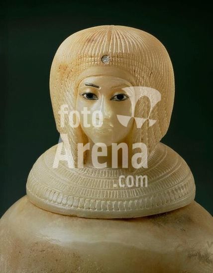 akg361833 Egyptian, New Kingdom, 18th dynasty, Amarna period, c. 1353-1337 BC. Canopic jar with portrait of a royal person. Detail. Alabaster with inlays, height 36.8cm. Origin: Thebes-West, Valley of the Kings tomb no. 55. Inv. no. JE 39637. Cairo, Egyptian Museum. Museum: Cairo, Egyptian Museum.