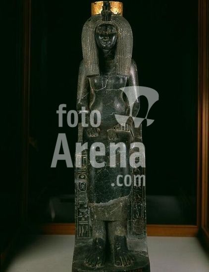 akg362190 Isis, minor wife of the Egypt. Pharaoh Thutmose II, mother of Thutmose III. Statue of Isis. Egyptian, New Kingdom, 18th dynasty, reign of Thutmose III (1479-1425 BC). Black granite, h. 98.5cm, w. 25cm, d. 52.5cm. Origin: Karnak, Cachette Court Inv. no. JE 37417 (CG 42072). Cairo, Egyptian Museum. Museum: Cairo, Egyptian Museum.