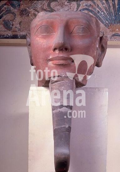akg362777 Hatshepsut, Egyptian queen, daughter of Thutmose I, wife of her stepbrother Thutmose II, reigned 1490-1468 BC. Head of Queen Hatshepsut with ceremonial beard. Egyptian, New Kingdom, 18th dynasty. Stone. Origin: Karnak. Cairo, Egyptian Museum. Museum: Cairo, Egyptian Museum.