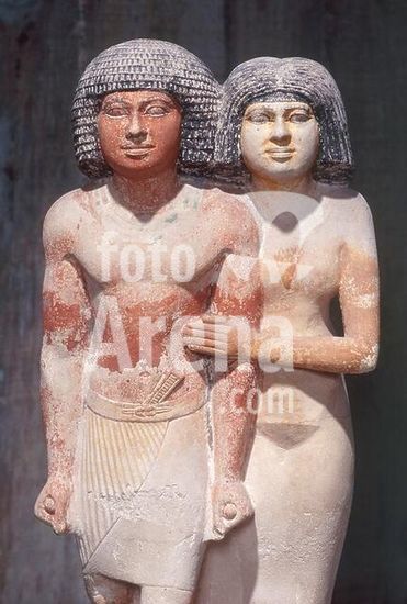 akg364176 Egyptian, Old Kingdom, 5th Dynasty. 2504-2347 v. Chr. Statue of Raherka and his wife Merseankh. Limestone, painted, height 52cm, width. 21cm. E 22769. Département des Antiquités égyptiennes, Paris, Musée du Louvre. Museum: Paris, Musée Du Louvre.