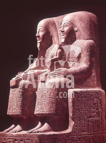 akg364237 Egyptian, New Kingdom, 19th dynasty, reign of Ramses II, 1279-1213 BC. Double statue of Meri, priest of Osiris, and his son Unennefer. Grey granite, height 105cm, width. 78cm, depth 455.2cm. Origin: Abydos. Inv. no. JE 35257. Cairo, Egyptian Museum. Museum: Cairo, Egyptian Museum.