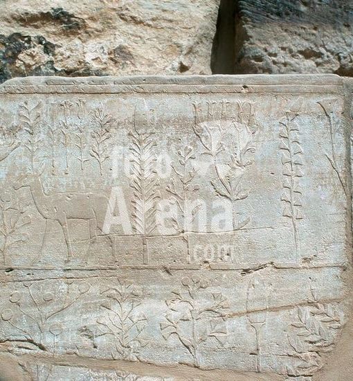 akg368955 Karnak (Upper Egypt), Temple of Amon-Re, Akhmenu-Festival Temple of Thutmose III. (New Kingdom, 18th dynasty, c. 1450 BC). Detail from the so-called "Botanical Garden" with exotic plants & animals. Relief, sandstone, height 110cm.