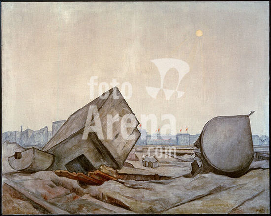 akg3760157 Rivera, Diego 1886-1957. "Hitlers letzte Zuflucht (Ruinen der Reichskanzlei in Berlin)", 1956. (Reste des Führerbunkers). Öl und Tempera auf Leinwand, 105 x 135 cm. Privatbesitz. Copyright: © Diego Rivera. This artwork is not in the public domain. Additional copyright clearance may be required before use of this image.