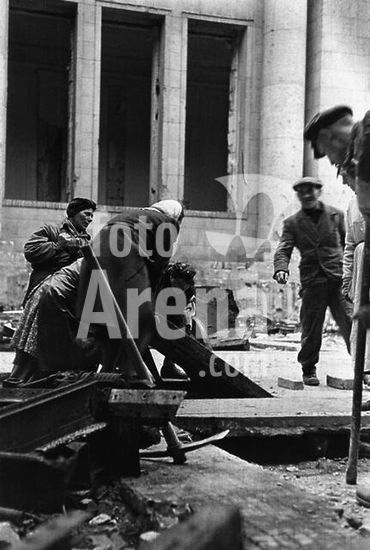 akg390019 Berlin-Mitte, Nouvelle chancellerie du Reich, Wilhelmstraße. Déblayage des gravats et travaux de démolition : les dalles qui pavent la cour d'honneur sont enlevées. (V. 1948).