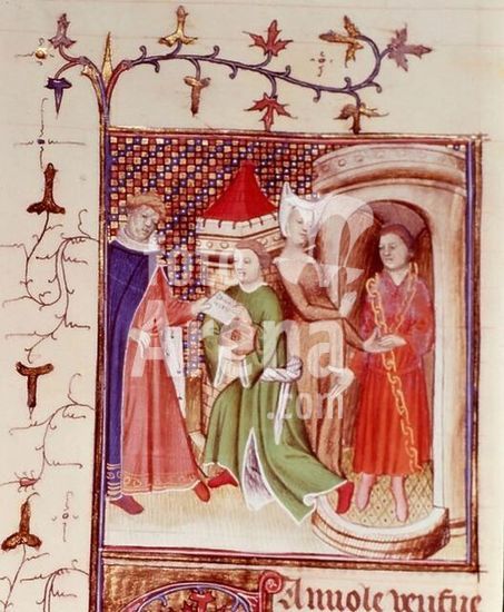 akg468934 Camiola, Widow from Siena; 13th century. Camiola liberates Roland from prison, biological son of Emperor Frederick II. Illumination, French, early 15th century. From: Giovanni Boccaccio, Le livre des femmes nobles et renommées. (French translation of Opus de claris mulieribus). Ms. Royal 20 C.V, f. 161. London, British Library. Museum: London, British Library. Copyright: Additional permissions needed for non-editorial use.