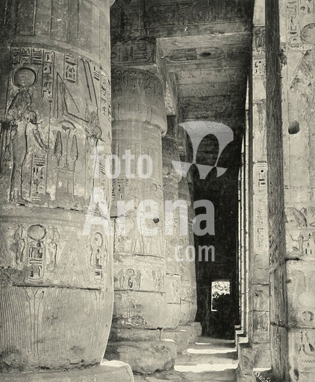 akg5542383 Karnak (Ägypten), Amun-Tempel, Großer Säulensaal (Neues Reich, um 1250 v. Chr., unter Sethos I. und Ramses II. erbaut). Teilansicht: Säulenhalle. Foto, um 1890.
