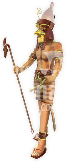 akg5750406 Antiquité égyptienne / Panthéon / Dieux et divinités. Le Dieu Horus (aussi Hor, Horos, Horou). (Une des plus anciennes divinités égyptiennes. Souvent représenté comme un faucon couronné du pschent ou comme un homme hiéracocéphale. Son nom signifie " le Lointain " en référence au vol majestueux du rapace. Son culte remonte à la préhistoire égyptienne. La plus ancienne cité à s'être placée sous son patronage semble être Nekhen, la " Ville du Faucon " (Hiérakonpolis). Dès les origines, Horus se trouve étroitement associé à la monarchie pharaonique en tant que dieu protecteur et dynastique. Dans le mythe le plus archaïque, Horus forme avec Seth un binôme divin caractérisé par la rivalité, chacun blessant l'autre). Reconstitution 3D en image de synthèse (2020).