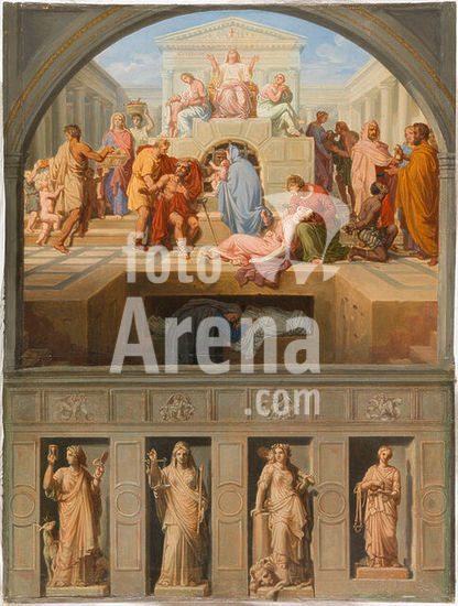 akg7907634 Norblin de la Gourdaine, Sébastien; 1796-1884. "Esquisses pour les églises Saint-Gervais et Saint-Louis-en-l'Ile: La Prudence - La Justice - La Force - La Tempérance - Les sept ½uvres de miséricorde." (Sketch for the churches of Saint-Gervais and Saint-Louis -en-l'Ile: Prudence - Justice - Strength - Temperance - The Seven Works of Mercy.), Between 1843 and 1868. Painting, oil painting. PPP4752, Paris, Petit Palais.