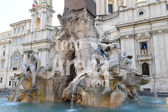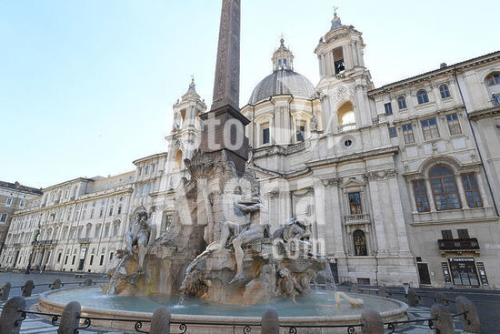 akg8069723 Rome, Italy. Piazza Navona with Fontana dei Quattro Fiumi. Photo, March 2020.