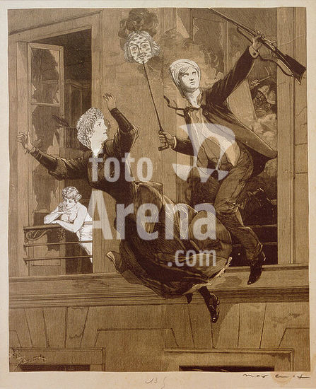 akg916781 Musik / Tanz / Polka.-"La Polka (Pologne)".-(Polnisches Tanzpaar beim Polkatanz). Farblithographie, anonym, Frankreich 1880er Jahre. Aus einer Serie "Danses nationales dans tous les pays". Museum: Private Collection., Paris.