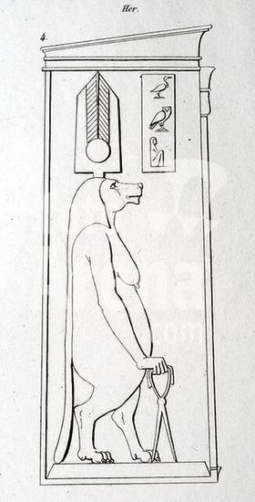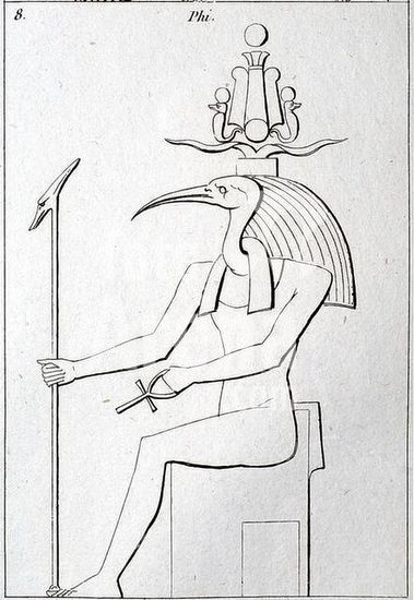 akg225501 Egyptian, Late Egyptian, 26th Dynasty, c. 600 B.C.-Thot, the god of the moon, the calendra and calculation of time, with ibis head.-Wood, partially gilded, and bronze. From Luxor. New York, Schultz Collection.