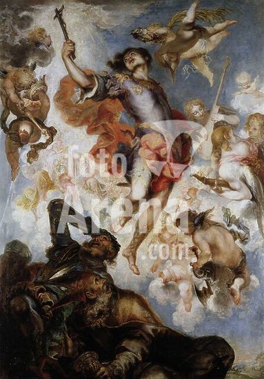 Room of the Signatureby Raphael (Raffaello Sanzio) (1483-1520)Raphael's Rooms The Room of the Segnatura contains Raphael's most famous frescoes. The room takes its name from the highest court of the Holy See, the 'Segnatura Gratiae et Iustitiae', which was presided over by the pontiff and used to meet in this room around the middle of the 16th century. Originally the room was used by Julius II (pontiff from 1503 to 1513) as a library and private office. The iconographic programme of the frescoes, which were painted between 1508 and 1511, is related to this function. It was certainly established by a theologian and meant to represent the three greatest categories of the human spirit: Truth, Good and Beauty. Vatican Museums (Raphael's Rooms - Room of the Signature, Stanza della Segnatura).