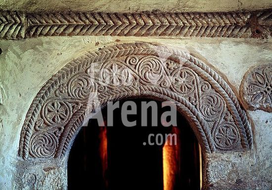 orz065080 ARCO LABRADO DE LA TRIBUNA SOBRE EL VESTIBULO DE ENTRADA DE LA IGLESIA DE SAN MIGUEL DE LILLO - SIGLO IX - PRERROMANICO ASTURIANO. Location: IGLESIA DE SAN MIGUEL DE LILLO. Oviedo. ASTURIAS. SPAIN.