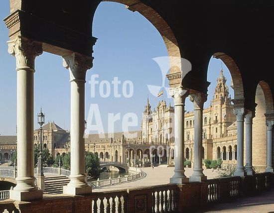 orz128504 VISTA DE LA ZONA CENTRAL DESDE LOS ARCOS - FOTO AÑOS 80. Author: ANIBAL GONZALEZ ALVAREZ-OSORIO (1876-1929). Location: España Square. Sevilla. Seville. SPAIN.