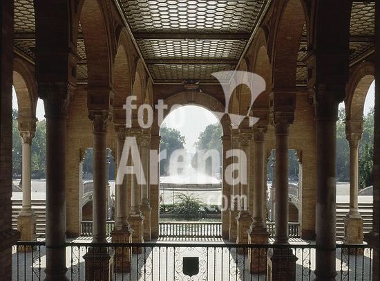 orz128505 VISTA DE LA FUENTE CENTRAL DESDE LOS ARCOS - FOTO AÑOS 80. Author: ANIBAL GONZALEZ ALVAREZ-OSORIO (1876-1929). Location: España Square. Sevilla. Seville. SPAIN.