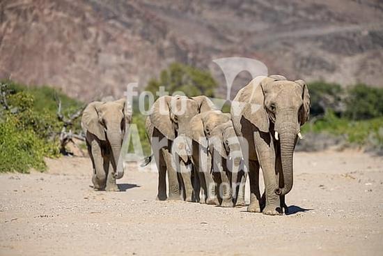 ibxfvp11096390 Desert elephants (Loxodonta africana) in the Hoanib dry river, Kaokoveld, Kunene region, Namibia, Africa