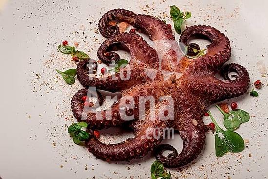 ibxgai10381196 Boiled octopus, close-up, rustic style, no people, top view, close-up