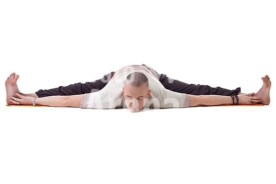 ibxgur10358174 Image of yogi posing on split, isolated over white backdrop