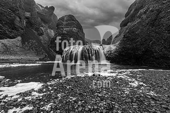 ibxkhi10361837 Stjornarfoss waterfall, near Kirkjubaejarklaustur, black and white photo, Sudurland, Iceland, Europe