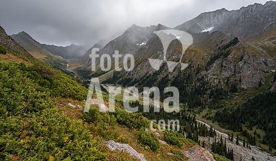 ibxmab10171676 Green mountain valley with river and steep mountain peaks, Chong Kyzyl Suu Valley, Terskey Ala Too, Tien-Shan Mountains, Kyrgyzstan, Asia