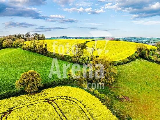 ibxmao10520399 TOP DOWN over Rapeseed fields and Farms from a drone, Devon, England, United Kingdom, Europe