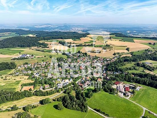ibxmkl11033795 Aerial view of the municipality of Schienen on the Schienerberg mountain range, the Hegauberge mountains on the horizon, Höri peninsula, Lake Constance, Constance district, Baden-Württemberg, Germany, Europe