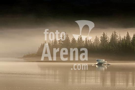 ibxmmm10344647 Ice floe floating on a glacial lake, fog, morning mood, Juneau, Southeast Alaska, Alaska, USA, North America
