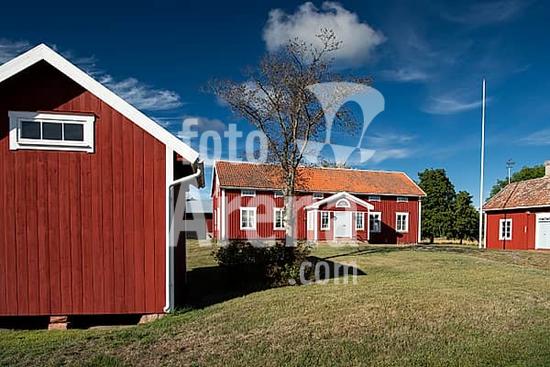 ibxomk10492184 Falun red or Swedish red painted houses, farm, Geta, Aland, or Åland Islands, Gulf of Bothnia, Baltic Sea, Finland, Europe