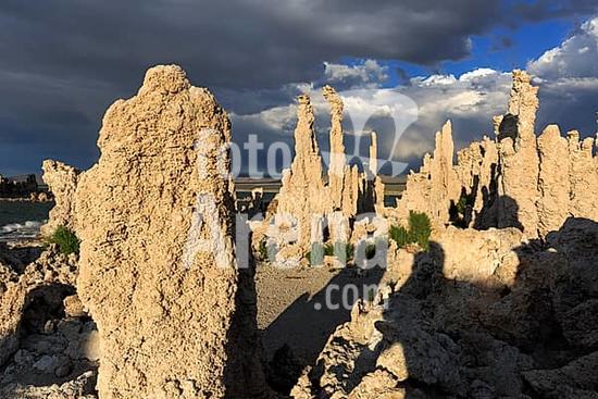 ibxron10481771 Large tufa columns under a dramatic sky with shadows, Mono Lake, North America, USA, South-West, California, California, North America