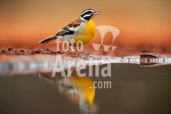 ibxsox11033678 Golden-breasted Bunting (Emberiza flaviventris), adult, at the water, drinking, Kruger National Park, Kruger National Park, Krugerpark, South Africa, Africa