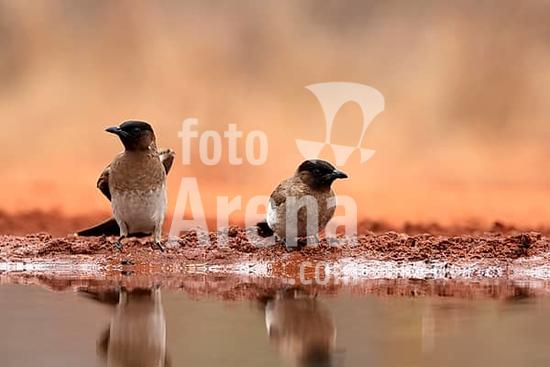 ibxsox11033966 Grey bulbul (Pycnonotus barbatus), adult, group, three birds, at the water, Kruger National Park, Kruger National Park, Krugerpark, South Africa, Africa