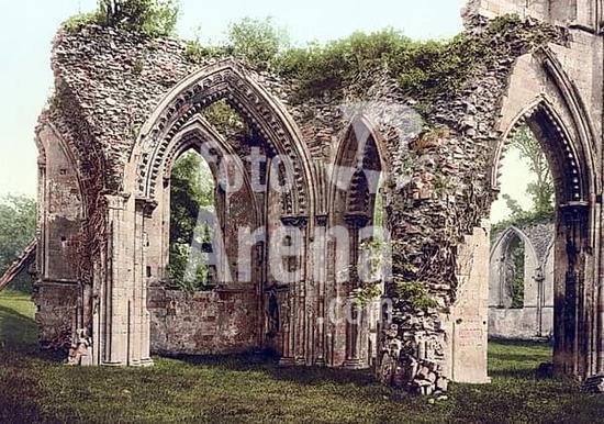 ibxsuc10391384 The Lady Chapel at the Glastonbury Abbey, former Benedictine abbey near Glastonbury in the county of Somerset, England, c. 1890, Historic, digitally restored reproduction from a 19th century original