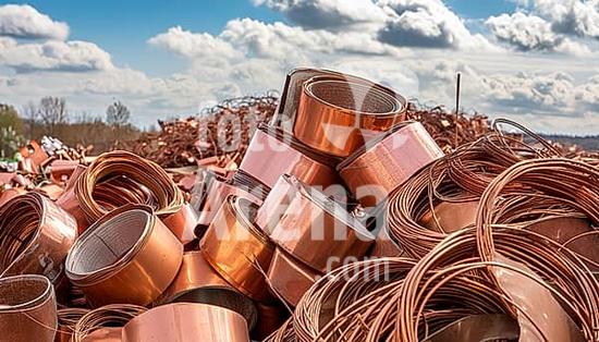 ibxsuc10501796 Material, metal, copper, a large amount of copper metal waste on a stockpile for recycling