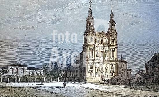 ibxsuc11087570 Historical view, 19th century, of the city of Poznan, Cathedral, formerly Prussia, Germany, today Poznan, Poland, digitally restored reproduction from a 19th century original, Record date not stated, Europe