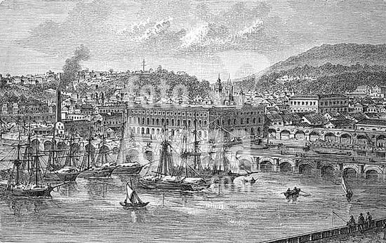 ibxsuc11094275 Rua d'Alfandega in Rio de Janeiro in Brazil, in 1880, Historical, digital reproduction of an original from the 19th century
