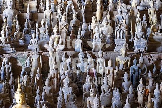 ibxwga10459325 Numerous Buddha statues in Pak Ou Cave, a sacred site, Pak Ou, Louangphabang Province, Laos, Asia