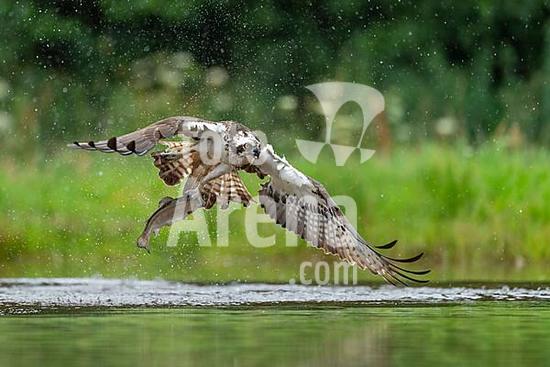 ibxwro10161686 Western osprey (Pandion haliaetus) hunting with a trout, Aviemore, Scotland, Great Britain